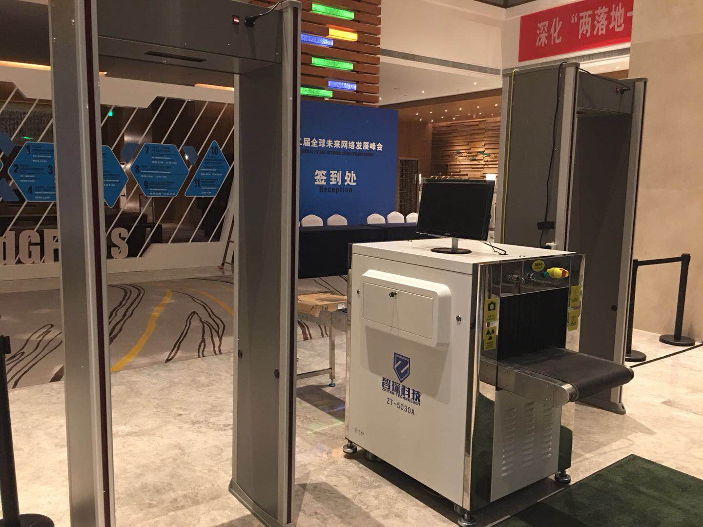 智探安檢,作為本次峰會唯一的安檢排爆裝備供應(yīng)商,為本次峰會提供了三臺ZT-5030系列安檢機,6套ZT-M810系列安檢門,及防爆罐、防爆毯、爆炸物探測儀等安檢排爆裝備,護航峰會的圓滿召開。